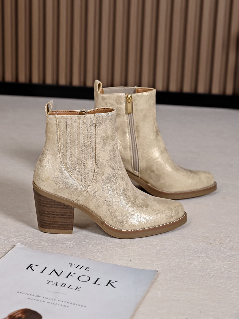 Bottines chelsea femme, couleur noires, en similicuir avec boucle décorative, un Zip fermeture sur le coté qui permet de se chausser facilement