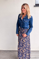 Découvrez La Chemise en Jean dont vous avez besoin. Confectionnée dans un denim 100% coton souple et résistant, elle offre un confort incomparable sans la rigidité des chemises en jean classiques. Sa couleur bleu brut est parfaite pour créer un look monochrome (le fameux 'total denim') ou pour casser l'imprimé d'une jupe longue (comme Lydie sur la photo !). C'est la garantie d'une pièce qui durera dans le temps.