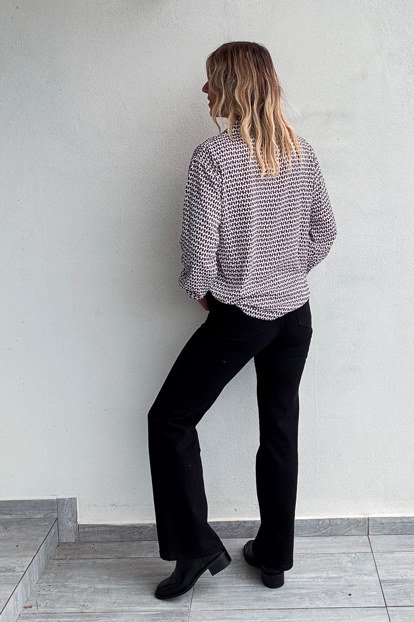 Chemise Femme Motif Pied-de-Poule Noir & Blanc Fluide & Élégante