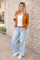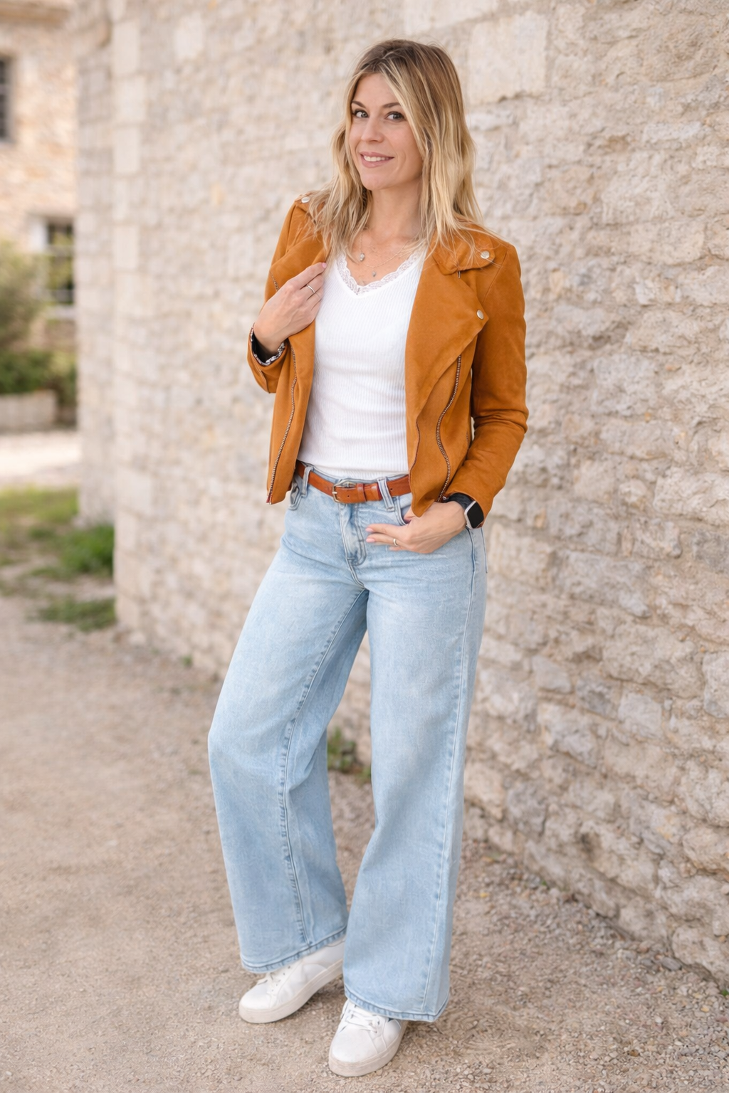 Idées de Look : Portez-le avec un pull rentré et des bottines dorées (pour le côté chic) ou un Perfecto Camel et des baskets blanches pour un look urbain décontracté.