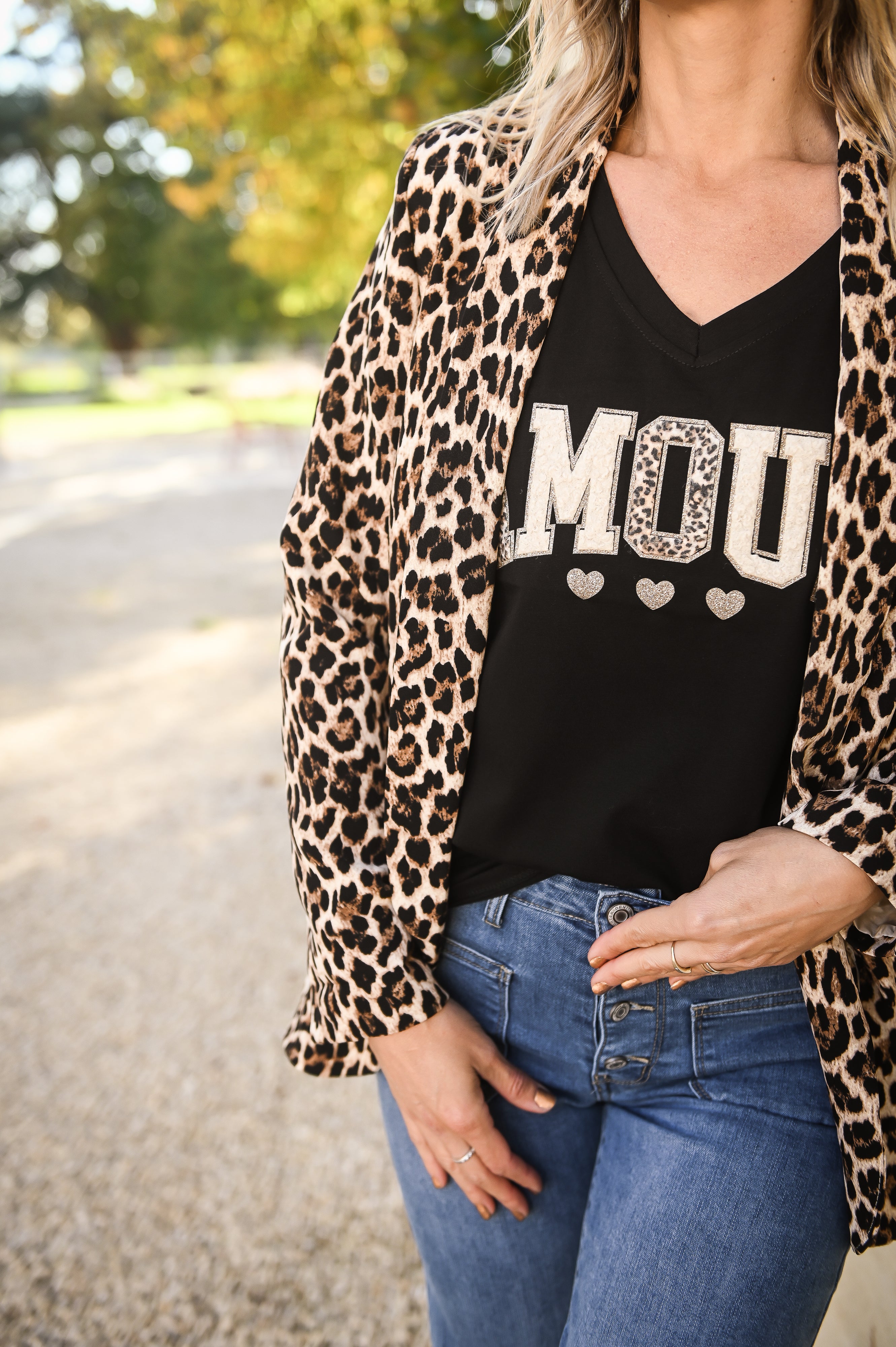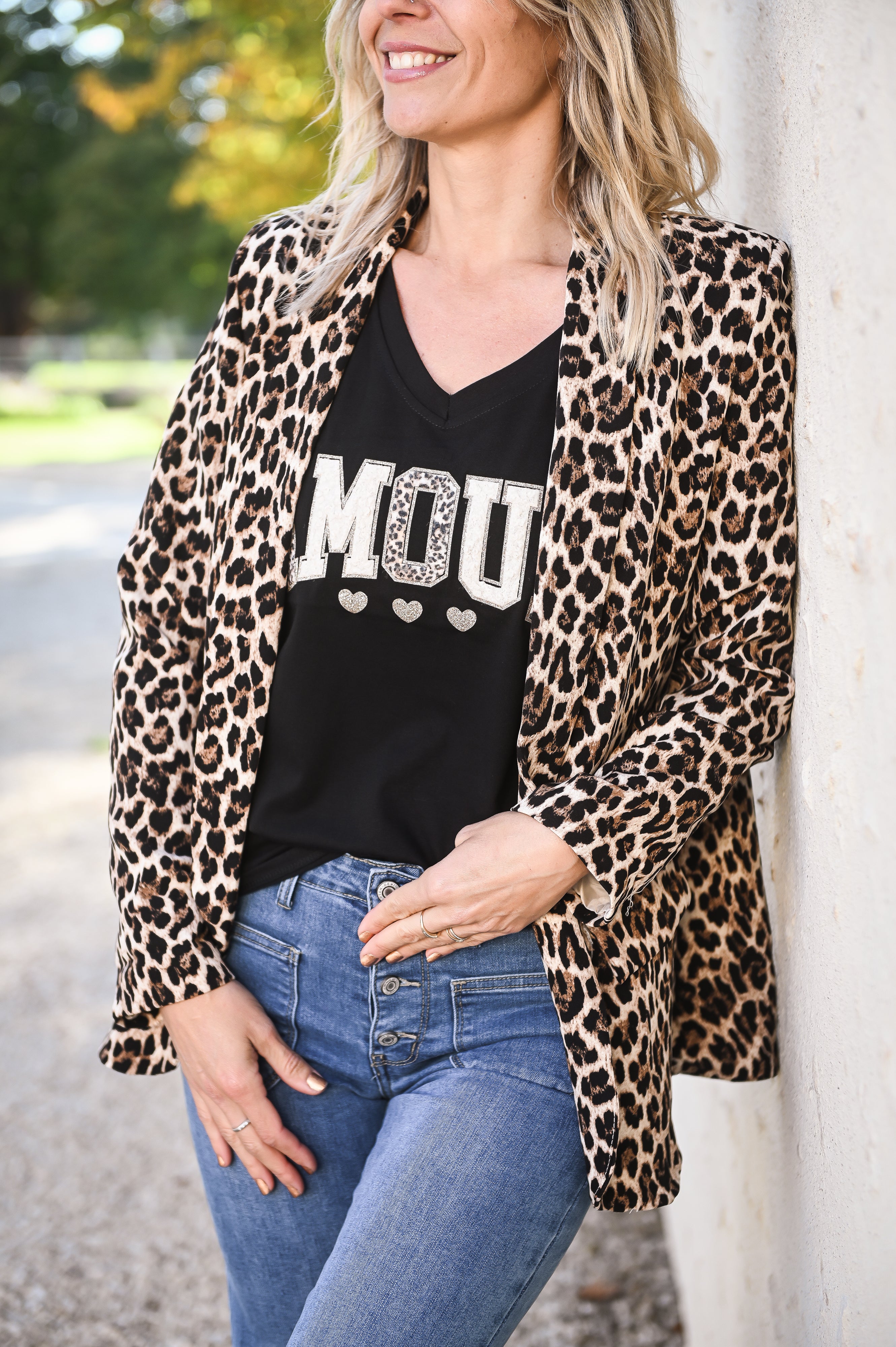 Blazer imprimé léopard, mi long, col echarpe, manches longue